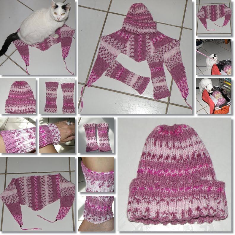 Ein Baktus, eine Mütze und Stulpen, je nach Grösse, als Arm- oder Beinwärmer zu benutzen - und wie man sieht hat die Katze gestern abend auch ihren Spass.